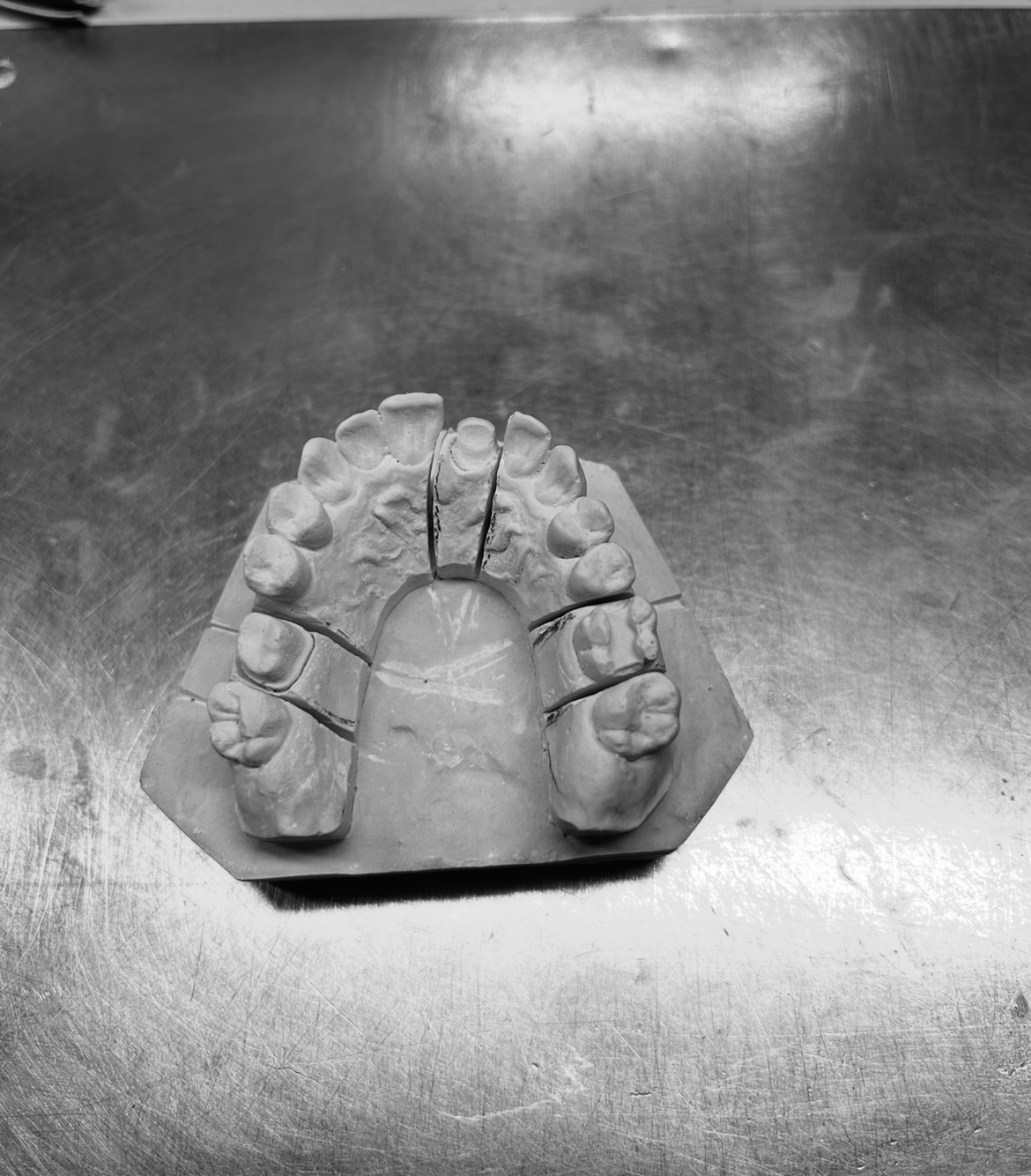 3. Marcamos con un lápiz por donde vamos a seguetear más tarde, por donde individualizaremos los muñones. También marcaremos por debajo del modelo donde queremos realizar los agujeros para colocar los pines mas tarde.
