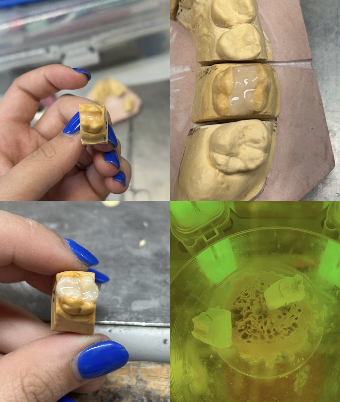 - El azul lo aplicamos por las cúspides para dar un poco de translucidez.